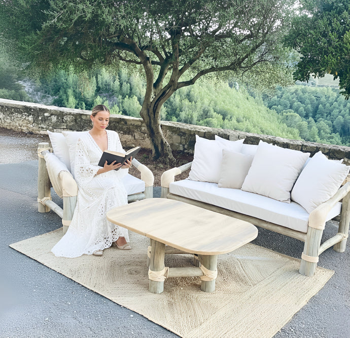 CONJUNTO DE JARDÍN VIÑA MARFIL – SOFÁ TRIPLE, BUTACA Y MESA EN MADERA MACIZA